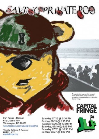 This year’s Capital Fringe is up and running, and Saving Private Poo celebrated with shows on both Saturday and Sunday! And I’m happy to announce that we have the first of several reviews out, which gives us 5 stars and names our show one of the “Best Of The Fringe”! While I’m certainly flattered, I can’t say I’m shocked. This is a very fun play that hits several different emotional levels. We only have 4 performances left, including one tonight at 10pm, so make sure you don’t miss them! For the review, please check out my Press page here or get the direct link to DC Metro Theater Arts here. Also, make sure to reserve your tickets here. Seats are limited and tickets are expected to go quickly for the last few performances.